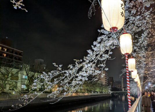 大横川も満開にはもう少しですが、ライトアップ夜桜見物の方々で賑わっていました