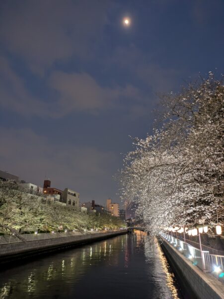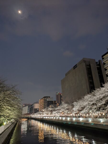 昨夜、大横川に夜桜を写しに出たら、お月さまが待っててくれました♪